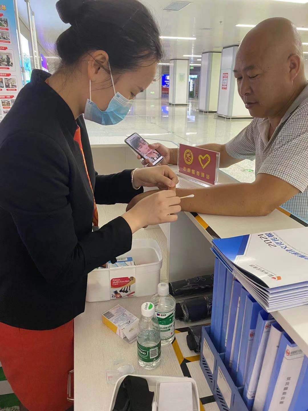 6月6日,一位男士來到贛州西站黨員服務(wù)窗口詢問是否有創(chuàng)可貼,經(jīng)了解,該旅客手部因不慎刮傷流血不止,值班人員察看傷口后,迅速先幫旅客采取酒精消毒,再熟練地用創(chuàng)可貼包扎好傷口。該男士連聲道謝,露出了滿意的笑容。