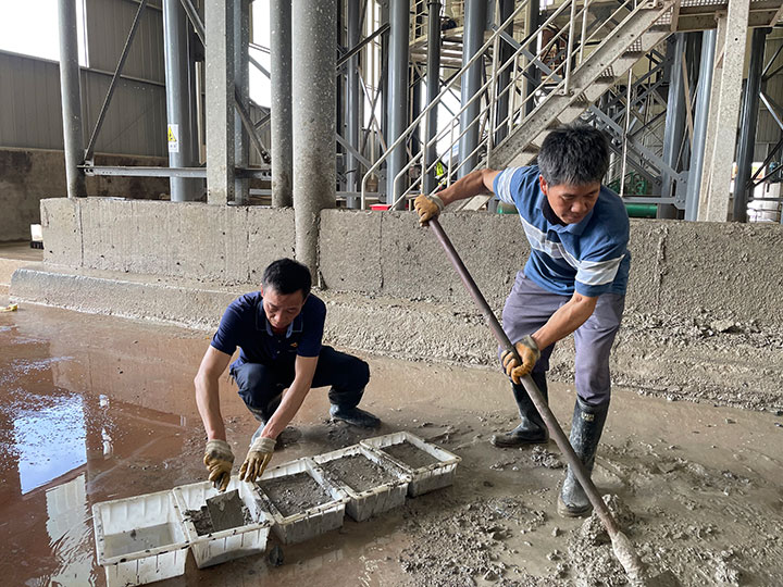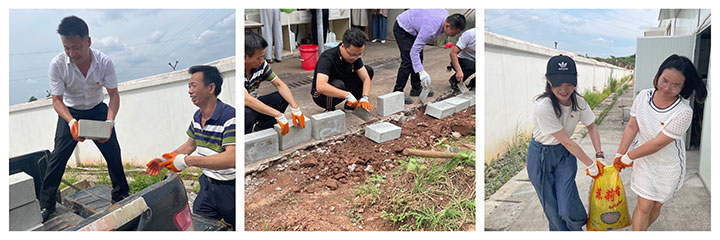 6月5日,利用周末休息時間,曹惠組織生產(chǎn)一線黨員加班加點,利用生產(chǎn)過程中產(chǎn)生的廢料混凝土,將其變廢為寶進行“加工”,制成60余塊磚。