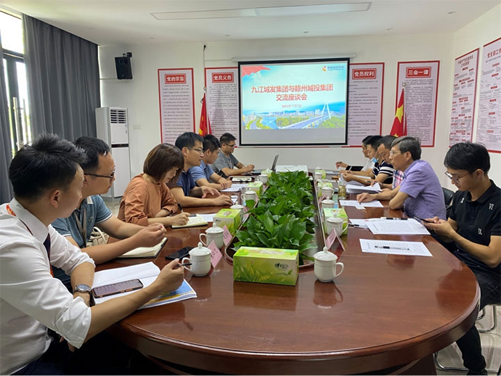 雙方在高鐵建投公司會(huì)議室召開了座談會(huì),首先通過觀看贛州城投集團(tuán)企業(yè)宣傳片和九江城發(fā)集團(tuán)九江高鐵樞紐工程宣傳片,介紹雙方企業(yè)情況。贛州城投集團(tuán)工程管理部、高鐵建投公司相關(guān)人員對(duì)贛州西站站前廣場(chǎng)公共交通、商業(yè)模式及站前廣場(chǎng)電梯、暖通、弱電智能化等設(shè)備選型及運(yùn)行情況進(jìn)行了介紹。期間,雙方就聚焦主責(zé)主業(yè)、推動(dòng)國企改革進(jìn)行了探討,并相互溝通交流了高鐵新區(qū)建設(shè)、資產(chǎn)運(yùn)營等方面的經(jīng)驗(yàn)。