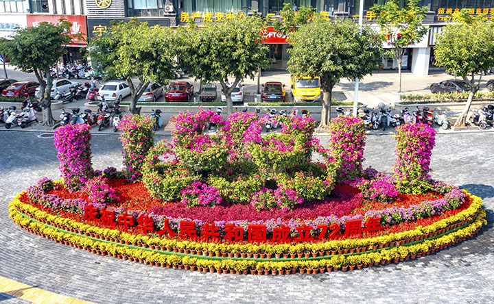 據(jù)施工方贛州城投集團(tuán)下屬子公司——贛州生態(tài)環(huán)境有限公司介紹,今年贛州城區(qū)的國慶氛圍營造與往年有所不同,主要以三角梅作為主花卉,搭配百日草、牽?;ā㈤L春花、雞冠花等紅色喜慶的時(shí)花進(jìn)行裝扮。僅三角梅一個(gè)品種,在快速路、贛州西站、興國路等路段就栽植不同大小的三角梅約10萬株。