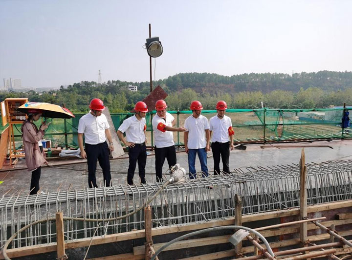 在蟠龍大橋項(xiàng)目,臨時(shí)黨支部與城投建工黨支部的黨員查看現(xiàn)場(chǎng)澆筑等工作情況,商量協(xié)調(diào)解決運(yùn)輸車輛等問題,確保項(xiàng)目上的混凝土澆筑施工循序推進(jìn)。