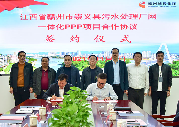 11月5日,贛州城投集團與崇義縣簽訂城鄉(xiāng)污水處理廠網(wǎng)一體化PPP項目合作協(xié)議,崇義虔安水環(huán)境公司與崇義縣城管局代表雙方進行簽約,贛州城投集團黨委副書記黃家偉、崇義縣副縣長魏江華等見證簽約并作講話。崇義縣城管局、生態(tài)投資公司相關(guān)負責(zé)人等參加簽約儀式。