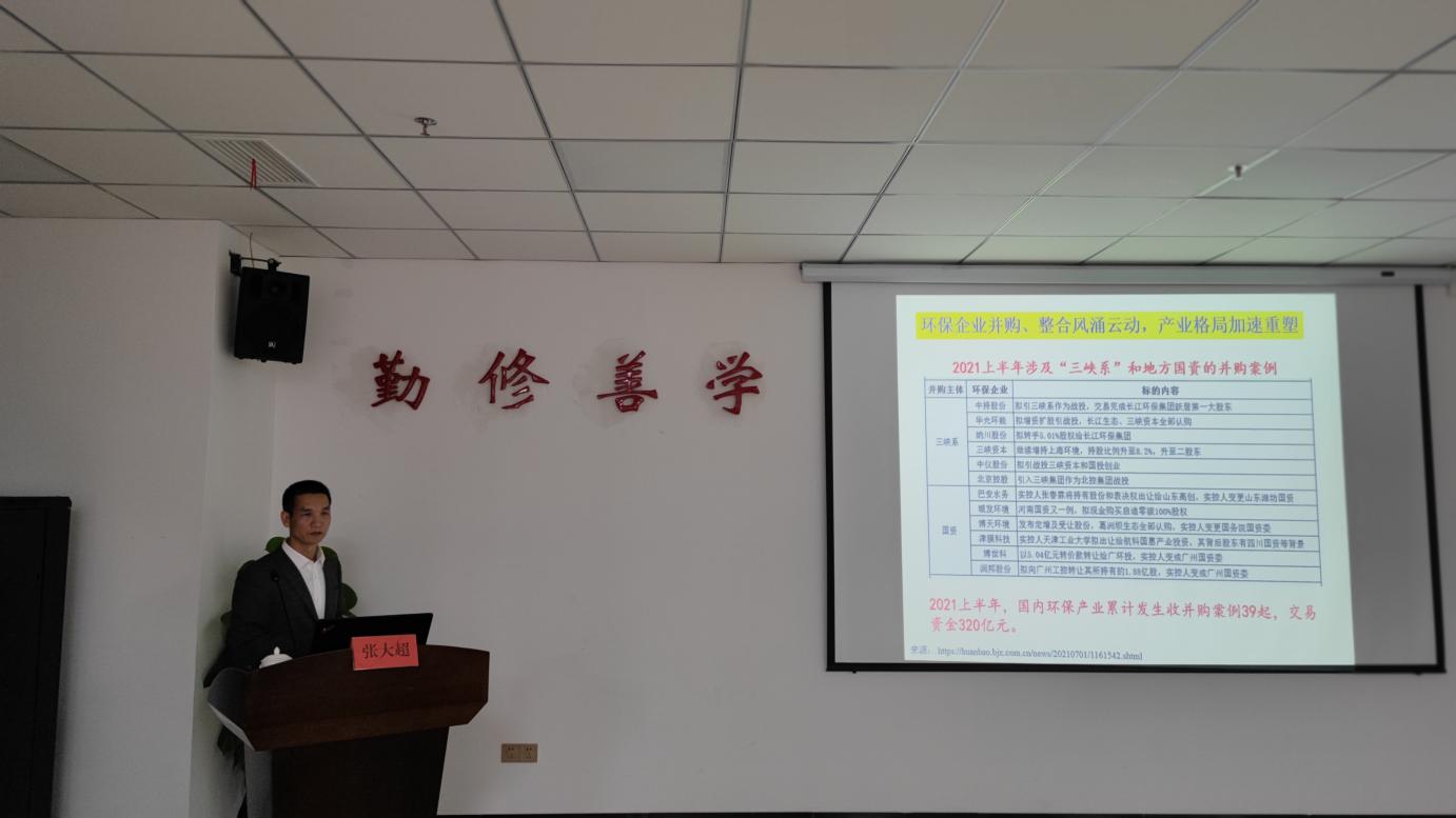 張教授詳細(xì)闡述了目前國(guó)內(nèi)環(huán)保產(chǎn)業(yè)發(fā)展態(tài)勢(shì),從環(huán)保產(chǎn)業(yè)方向、集聚區(qū)域、企業(yè)規(guī)模等方面指出了國(guó)有企業(yè)在環(huán)保產(chǎn)業(yè)領(lǐng)域的優(yōu)勢(shì)與劣勢(shì),為集團(tuán)生態(tài)板塊發(fā)展提出深耕精細(xì)化、系統(tǒng)化運(yùn)營(yíng)等建設(shè)性建議。期間,參訓(xùn)人員還與張教授就贛州市域農(nóng)村生活污水處理工藝及市場(chǎng)發(fā)展?fàn)顩r進(jìn)行了深入的探討與交流。