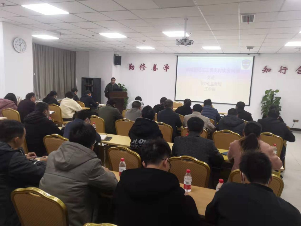 為進(jìn)一步加強贛州城投集團(tuán)在建工程項目農(nóng)民工工資支付規(guī)范化管理,提升項目建設(shè)管理人員管理水平,切實做好農(nóng)民工工資支付保障工作,近日,贛州城投集團(tuán)黨委黨校舉辦保障農(nóng)民工工資支付專題培訓(xùn)。根據(jù)集團(tuán)黨委黨校第二學(xué)期教學(xué)計劃安排,此次培訓(xùn)由工程管理公司承辦,贛州市勞動監(jiān)察局監(jiān)察一科科長王貴福受邀前來集團(tuán)授課,集團(tuán)各在建項目負(fù)責(zé)人、勞資監(jiān)管員、子公司共50余人參加培訓(xùn)。